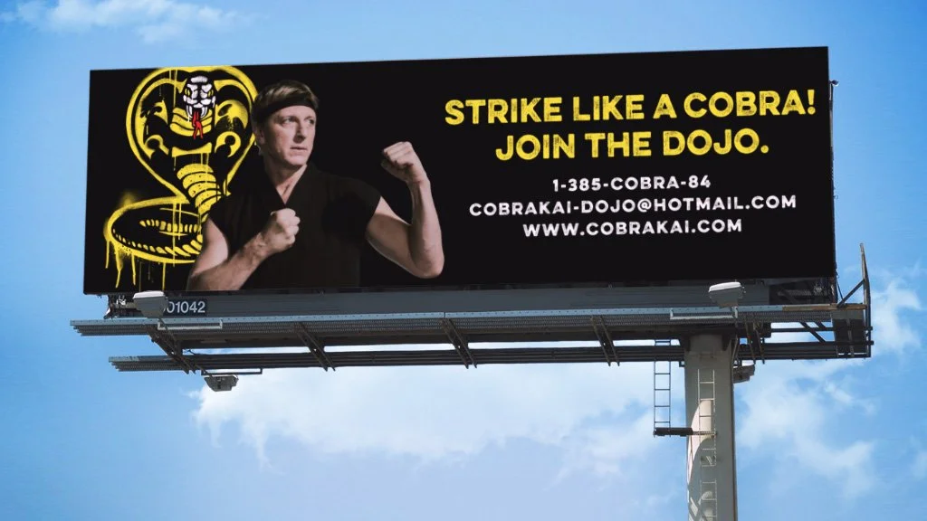 We created striking in-world billboards for the Cobra Kai Dojo and LaRusso Auto Group that were placed in high traffic areas in New York and Los Angeles.